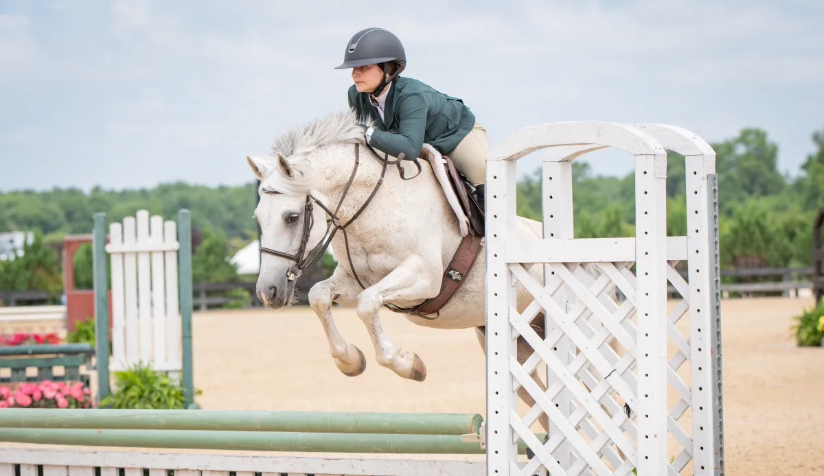 Copper as we call him is 10 year old, 14h grade gelding. Copper is the perfect leadline through 18inch pony who could easily step into the 2ft hunters with his right rider. He is proven with small children and is ready to have his own rider. Easy keeper, loads of miles outside of the ring, has a flying lead change when asked.